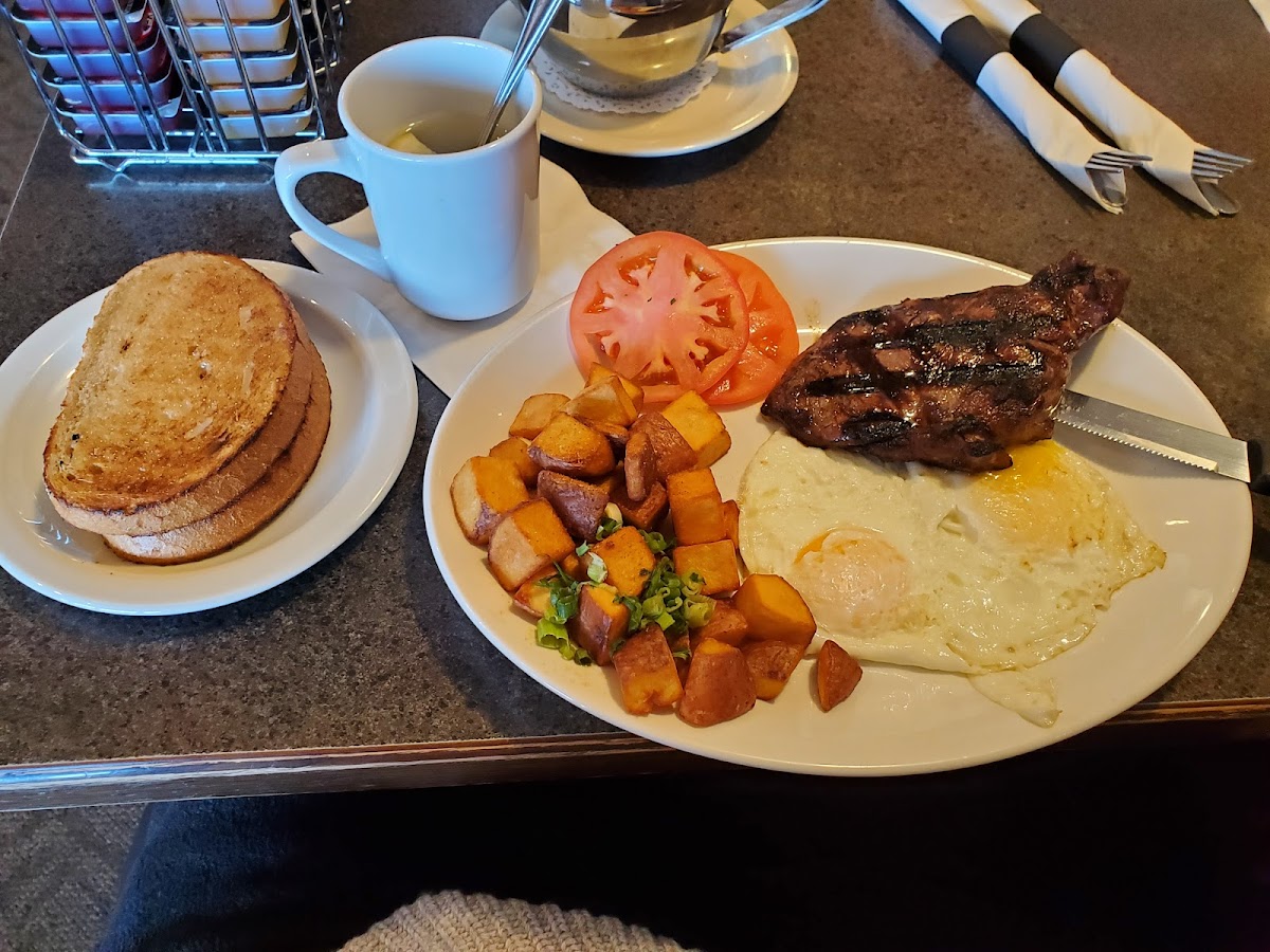 Breakfast hours bring their own delicious offerings, with specials like two eggs, sausage, and hashbrowns served piping hot, showcasing the cafe's consistency in quality. The welcoming ambiance is a favorite among senior citizens, who are treated to special discounts and the comfort of bottomless coffee cups throughout their meals.